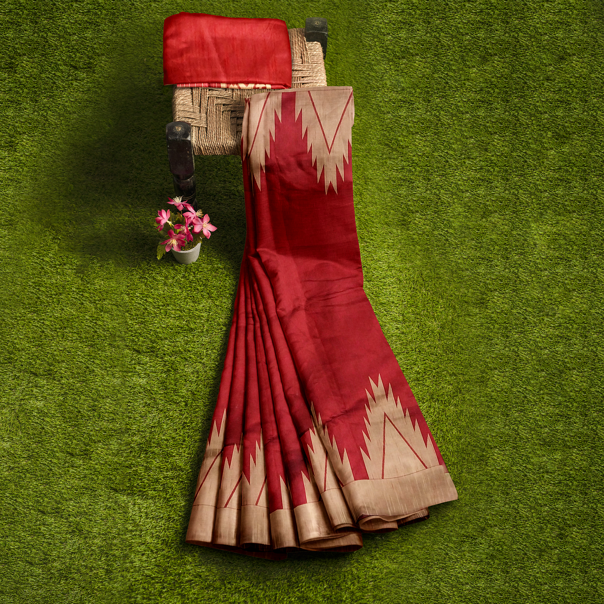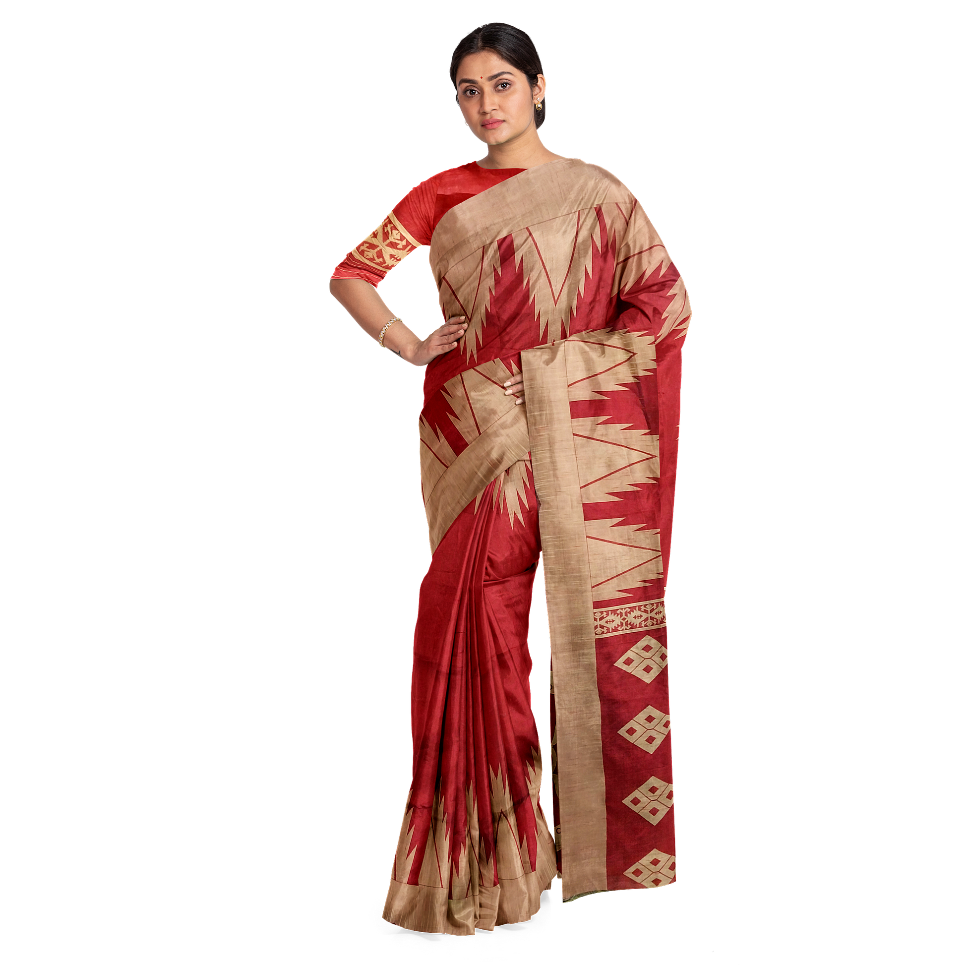 Bold Red Silk Saree with Zari Buy Online
