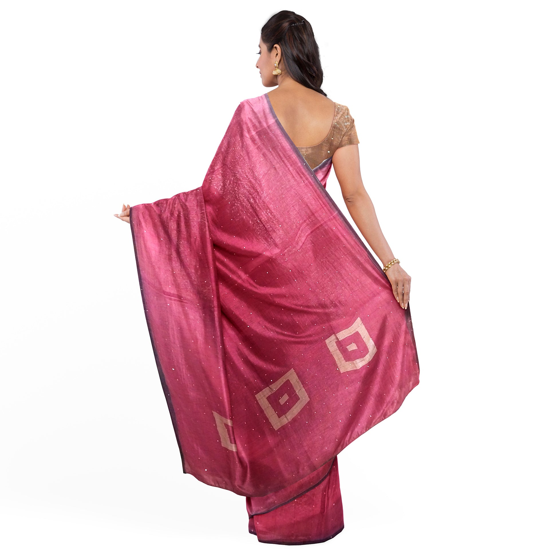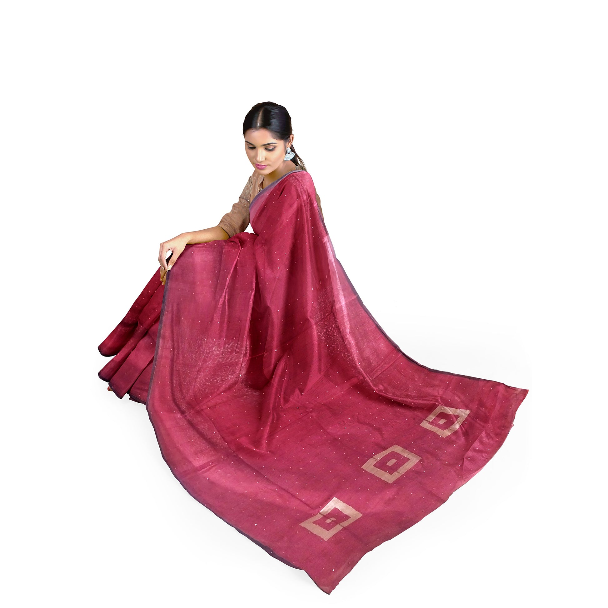Golden-Maroon Coloured Traditional Tussar Silk Saree