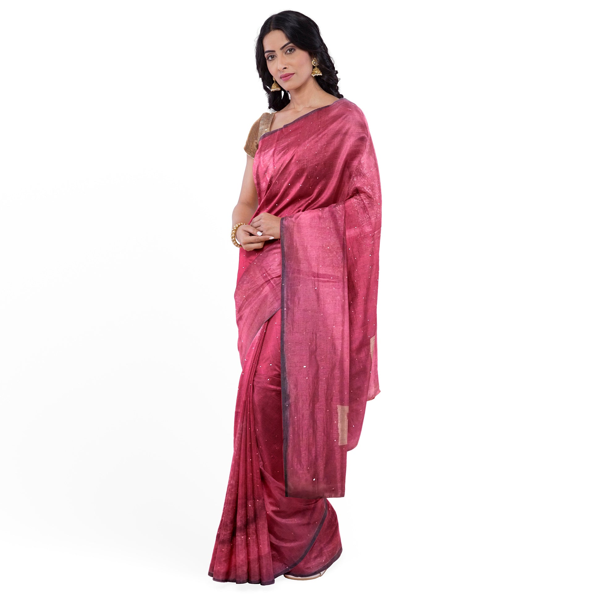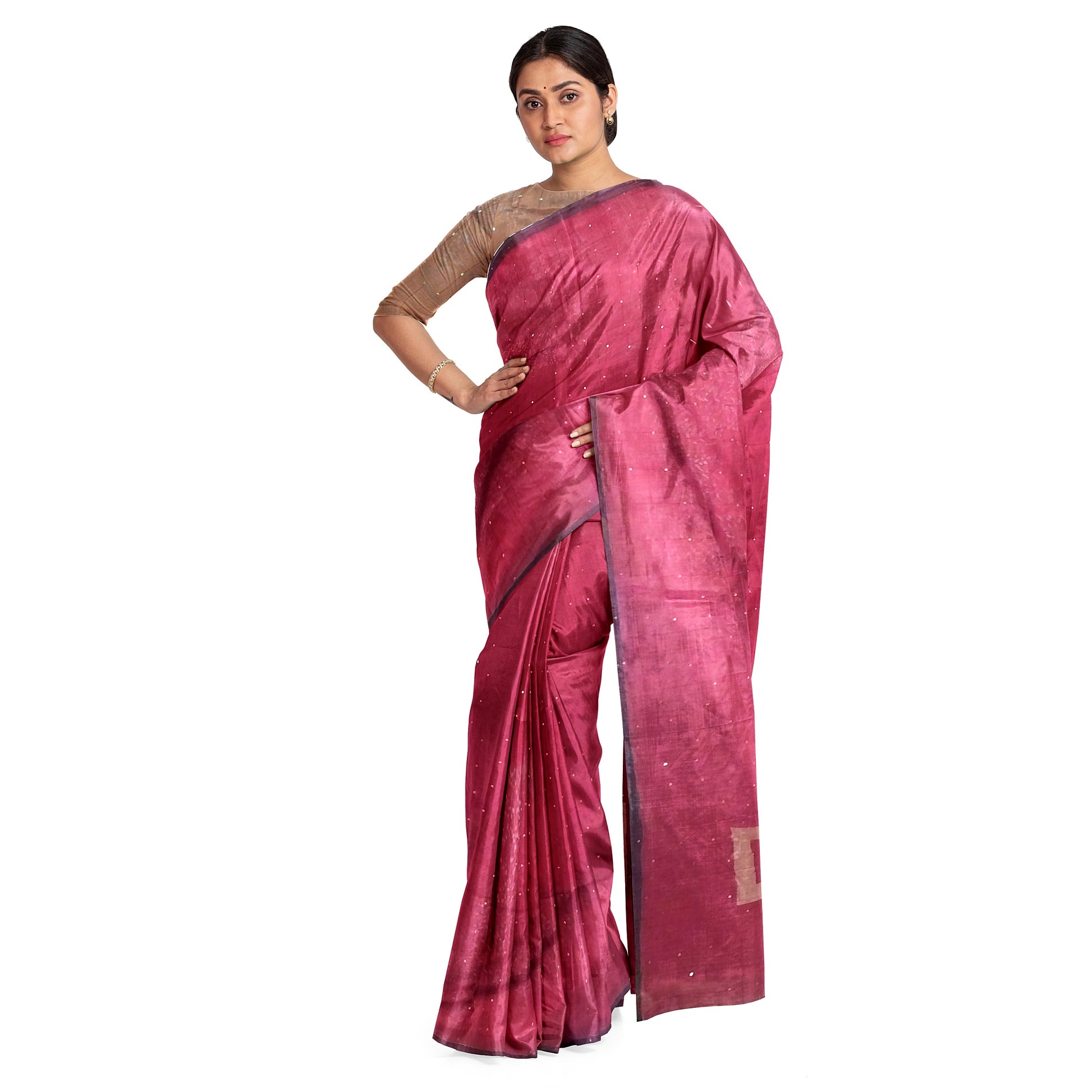 This magnificent golden-maroon coloured traditional tussar silk saree has amazing motifs and patterns, you'll reign in their classic charm and grandeur. The beautiful weaving work that runs in the length of the border is breathtaking. This saree comes with an unstitched woven tussar silk fabric blouse piece that can be stitched according to your specifications. This saree is appropriate for casual occasions, parties, functions, social gatherings, special occasions, and weddings. To finish the outfit, pair it with traditional-styled accessories.