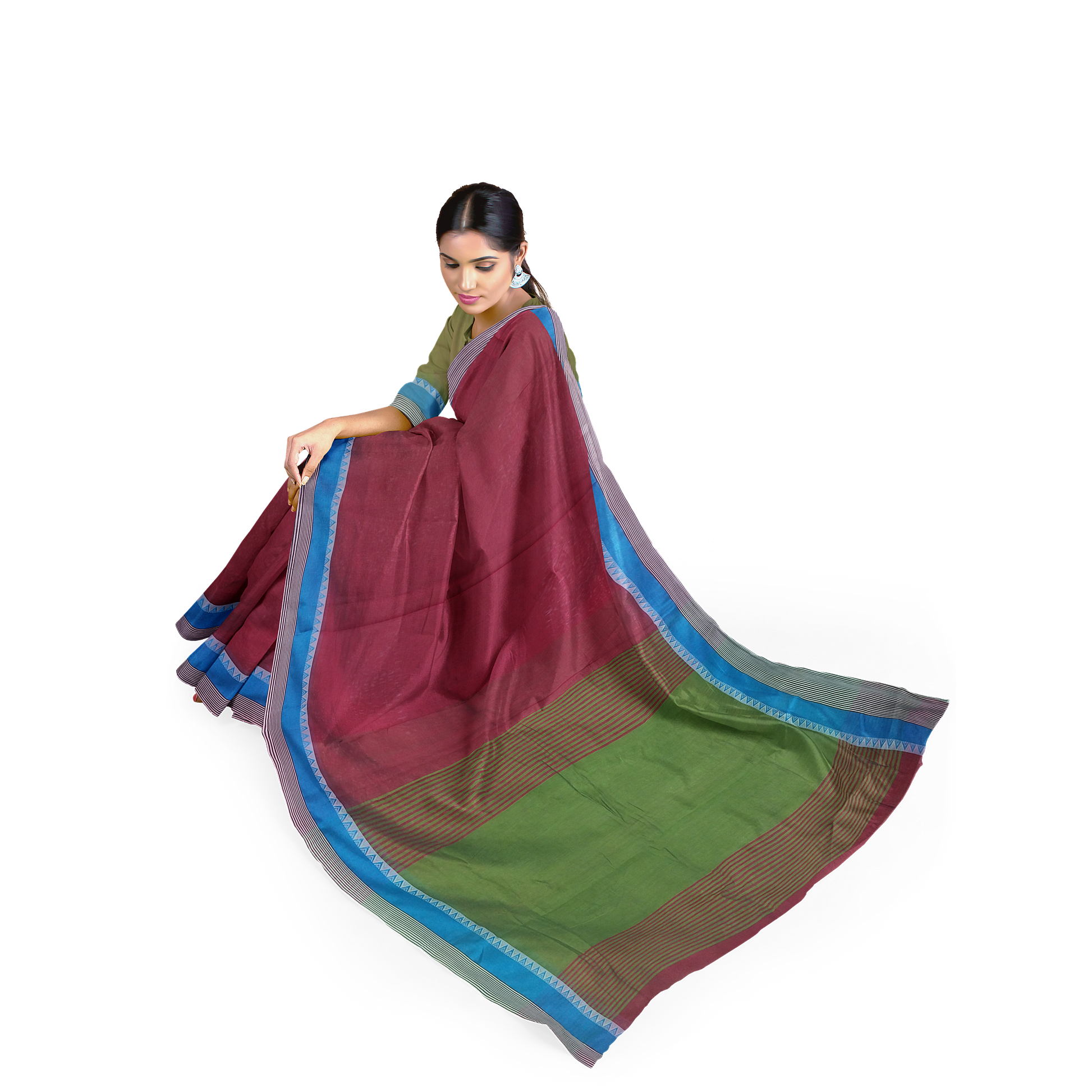 Pair it with a classy red and blue blouse to complete the look. This saree goes really well with a golden color necklace, a matching pair of earrings, and a simple bracelet. It is perfect for intimate weddings, family gatherings, and casual outings. Grab yours now before it's too late. You surely don’t want to miss it!
