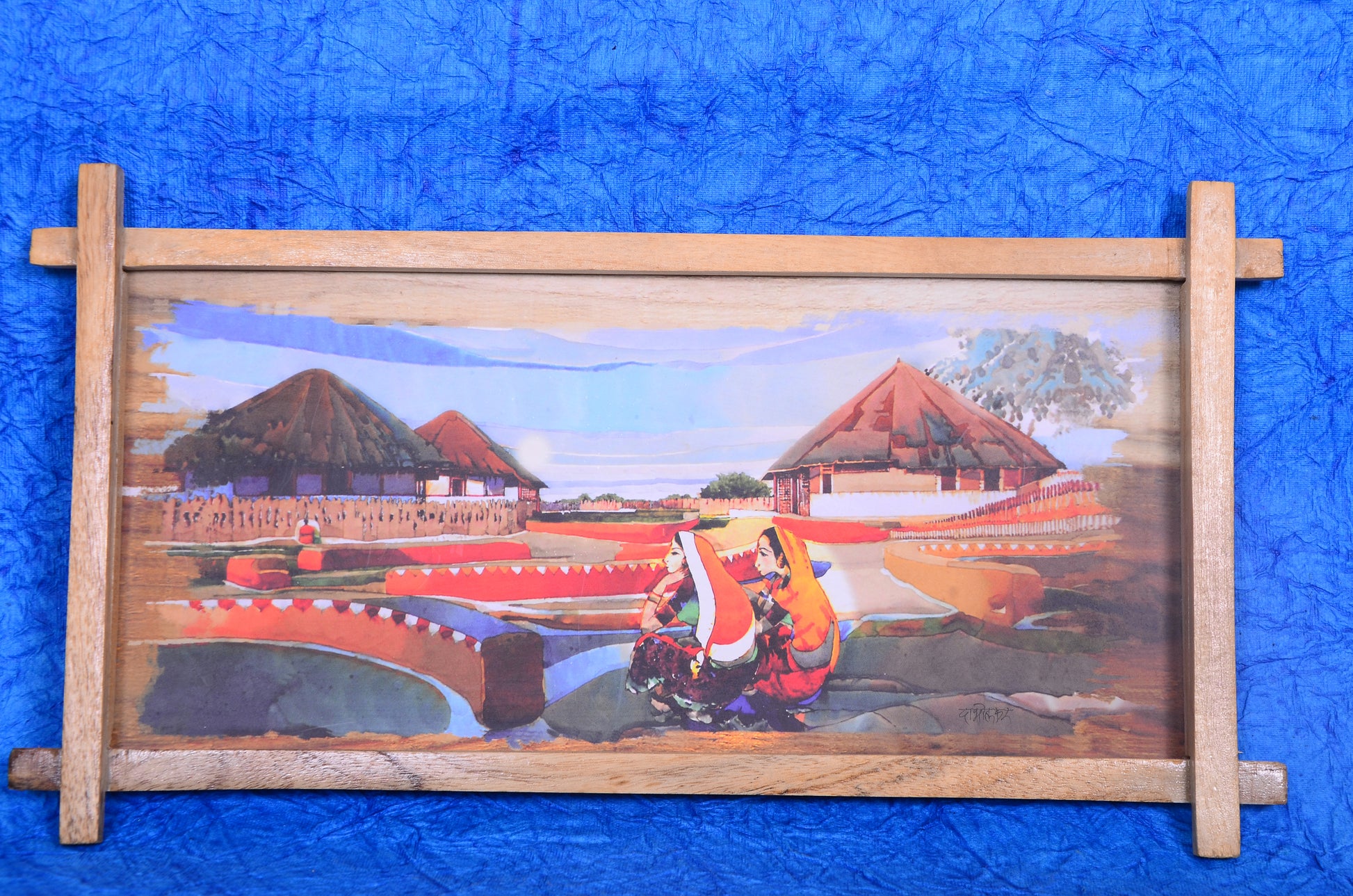 This is an oil painting depicting a scene from an Indian village. This nature art and painting depicts a variety of subjects, including village life and its beauty. The countryside and villages, whether in India or elsewhere, have their own appeal and beauty. For generations, painters have been drawn to the simplicity of villages, which has resulted in village life becoming a major genre of painting. Painting is not always protestant, or rebellious, as we all know. Sometimes the simplest solutions are the most effective. The ideal place to find simplicity is in the lap of mother nature, in our villages. This lovely painting was created by a bluelili artist. This can add a touch of elegance to your living room.