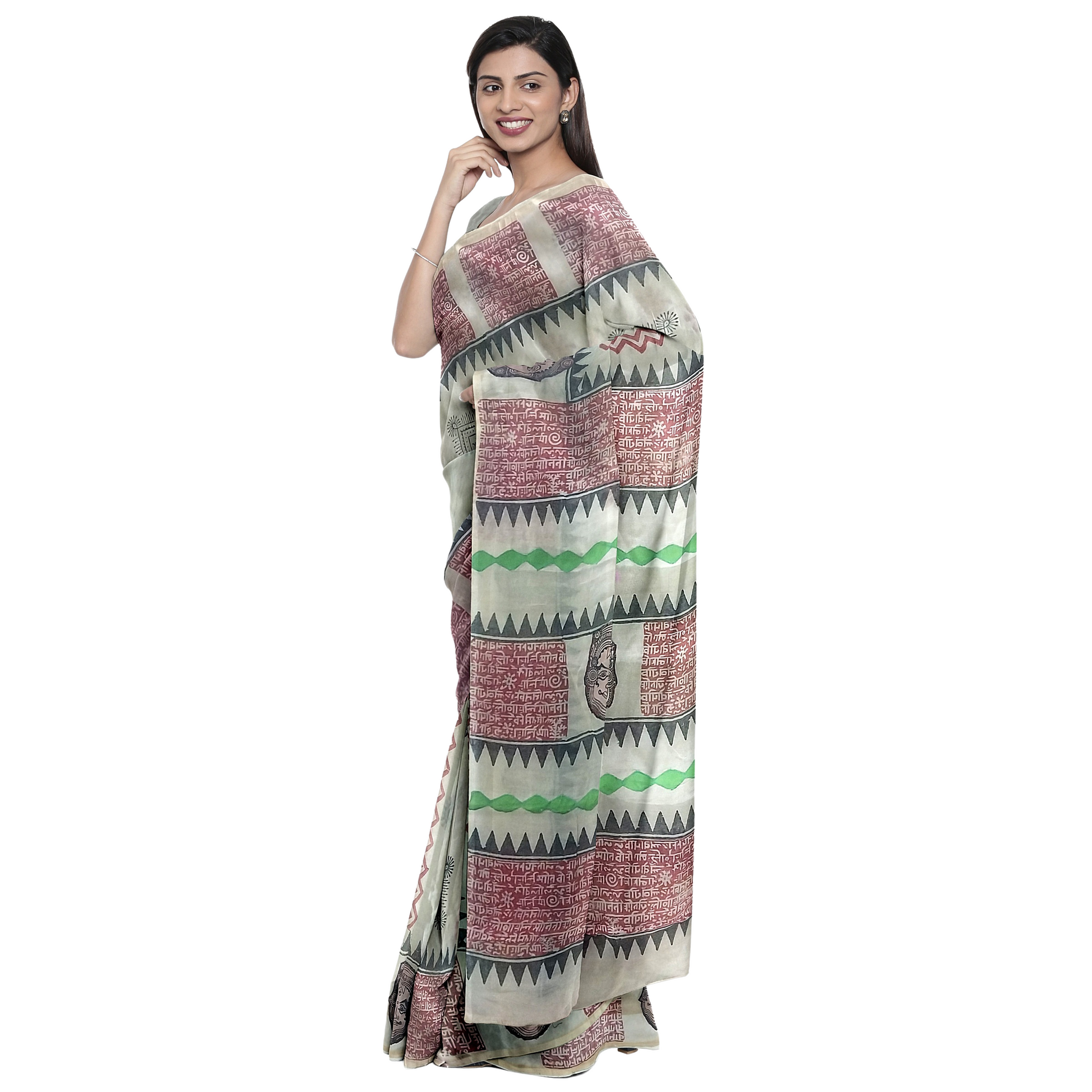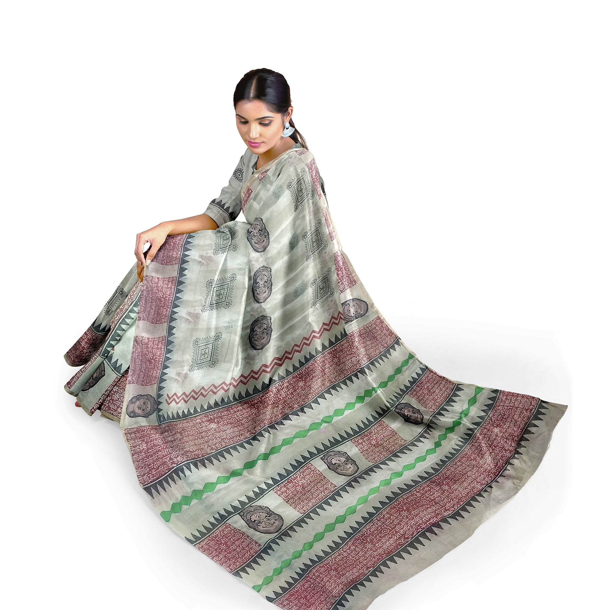 Pure Cotton Silk Saree with Printed Crème Colours