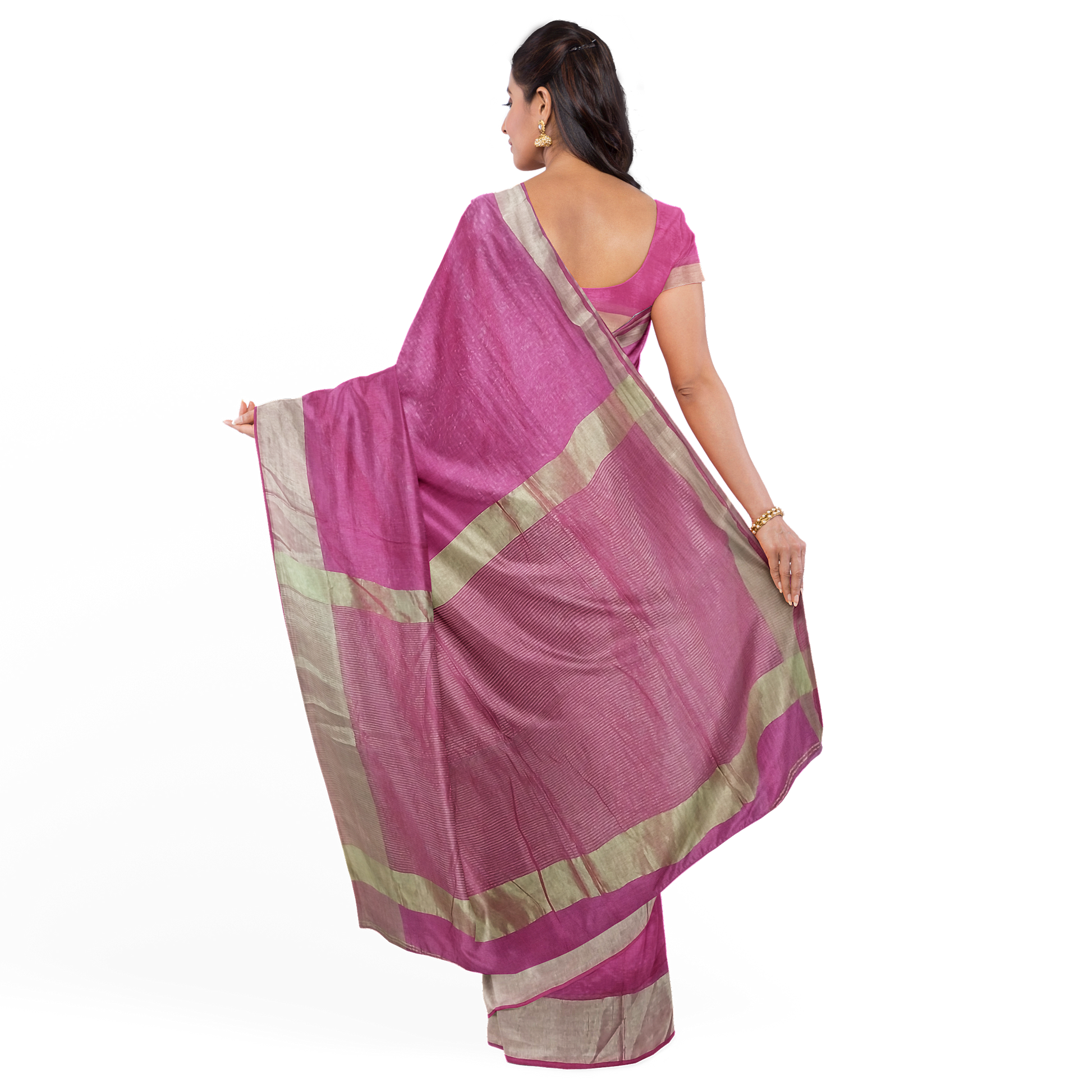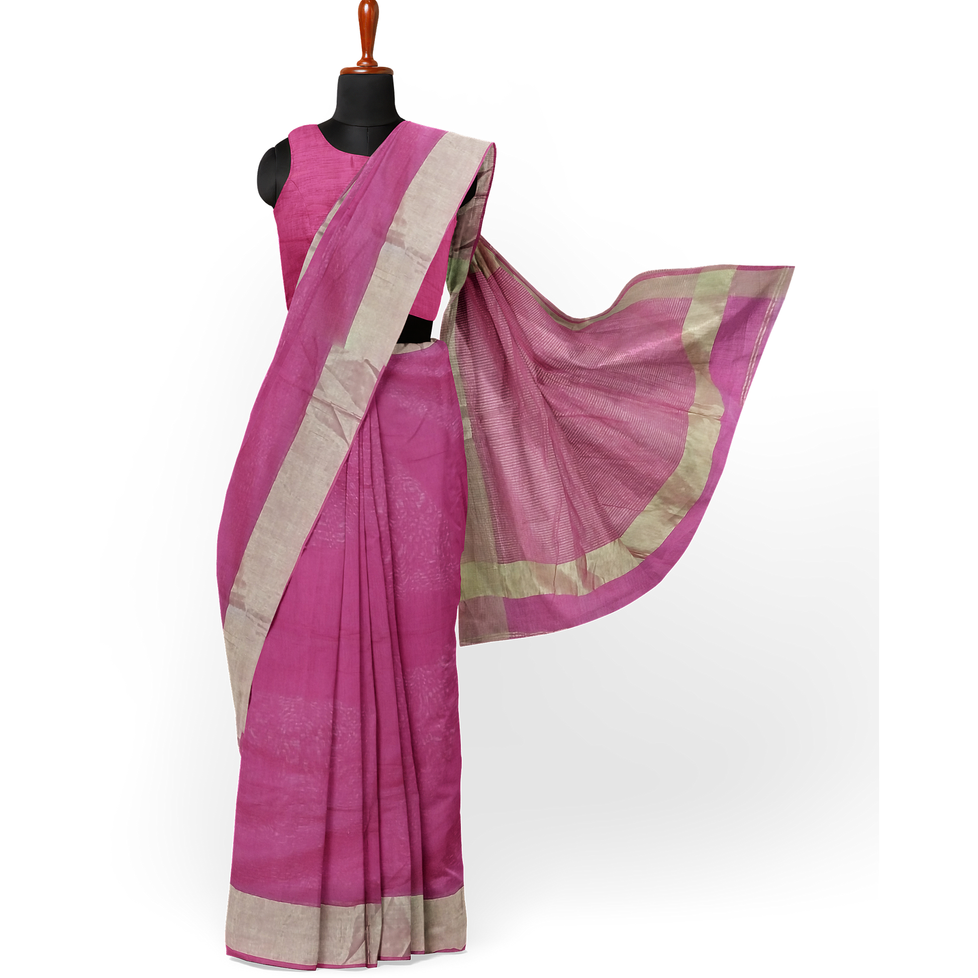 With a hint of gold, this gorgeous Rani-colored saree is hauntingly stunning. This saree is the perfect blend of elegance and comfort. Cotton silk sarees made by hand are gentle on the skin and quite comfortable to wear. The design is very subtle yet it looks quite attractive. Because it's made of cotton silk, it's easy to wear and fold. Claim it before its too late.